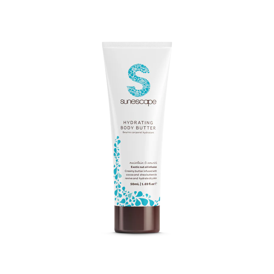 Your skin deserves the royal treatment and with Sunescape’s Hydrating Body Butter, you’ll get just that! This rich, indulgent body butter is infused with Cocoa and Shea Butter and exotic nut oils, that lock in moisture, revive and hydrate dry skin and extend the life of your tan. With a light, creamy texture, this body butter melts into skin easily – apply round the clock to maintain a fab faux glow.