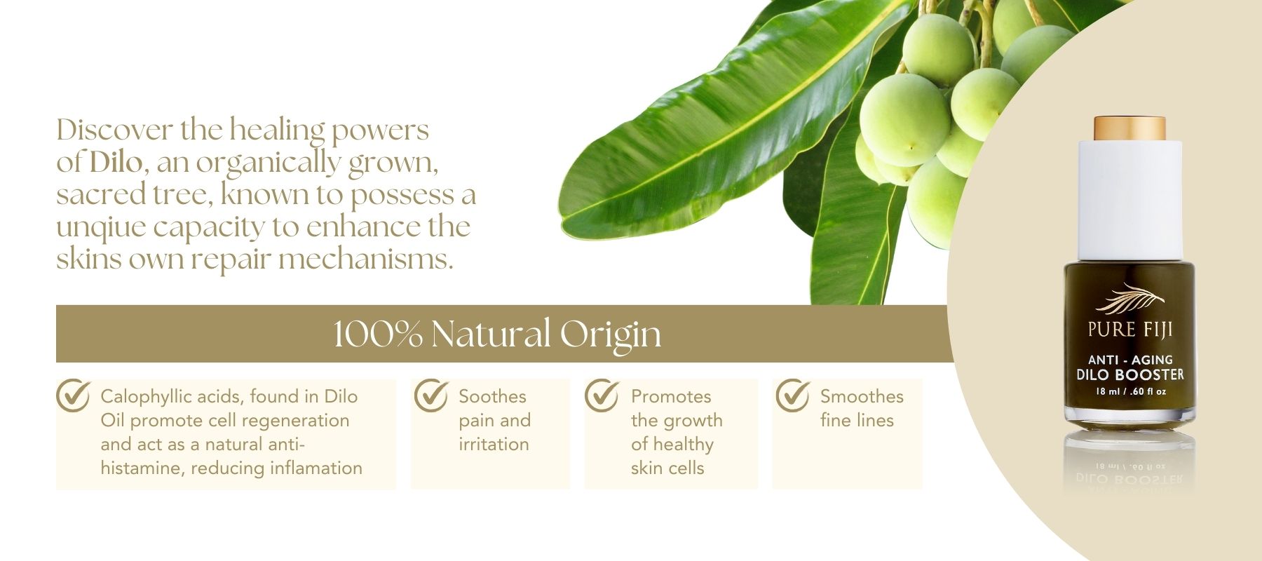 Dilo oil is an amazing multitasking oil with a multitude of anti-aging and skin healing benefits. Rich in essential fatty acids, it promotes skin cell regeneration and smooths fine lines and wrinkles while strengthening the skin's moisture barrier, improving skin hydration, firmness and elasticity.