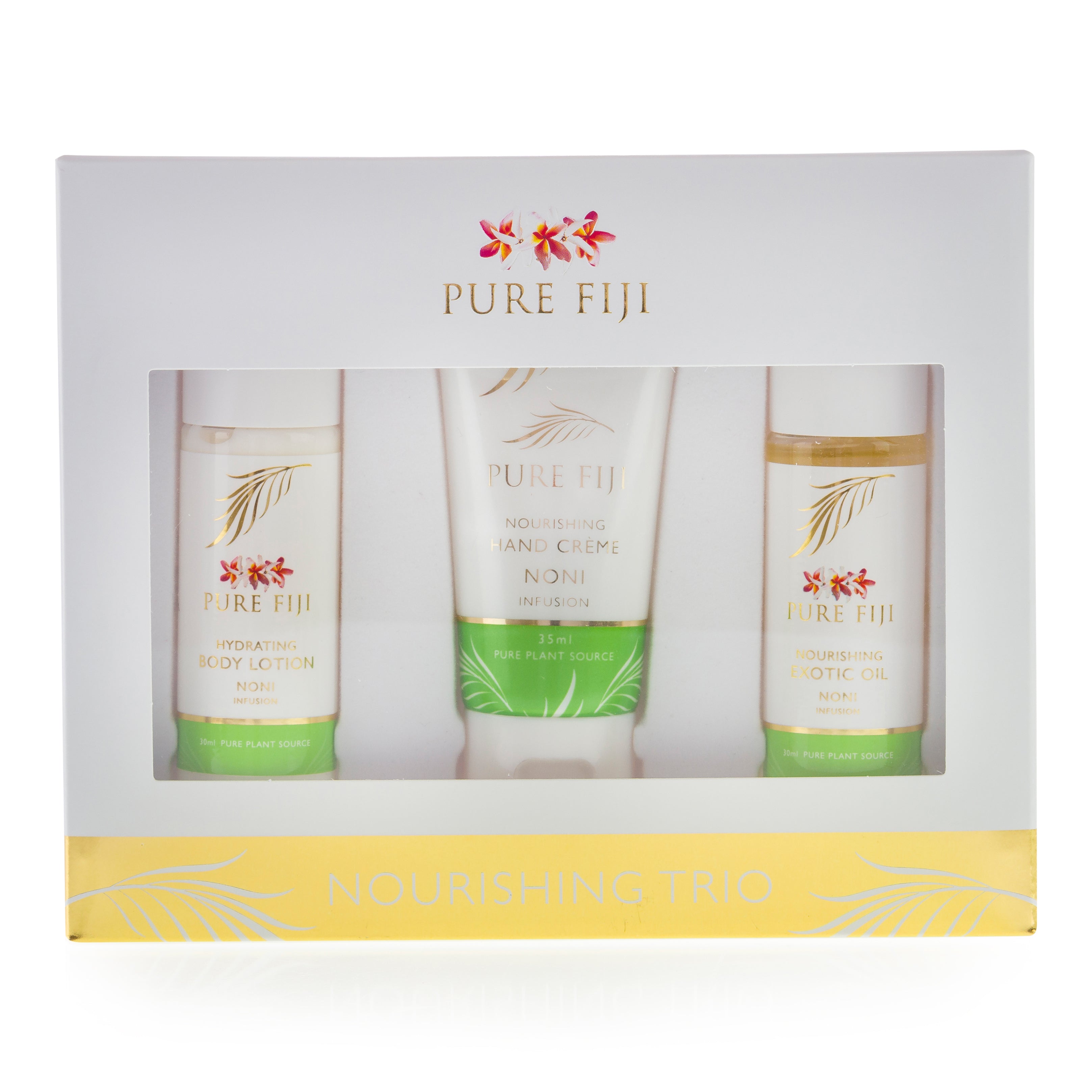 Enjoy travel sizes with a multi-tasking Exotic Oil that you can use on skin, in your hair, for cuticles and more, perfect when there aren’t enough hours in the day. Massage our hydrating body lotion onto skin for all day hydration and our nourishing hand crème for super soft heavenly hands.